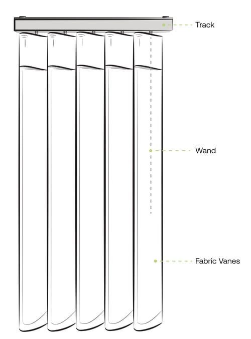 Veri Shade Blind Anatomy Track The track, is what the Veri Shade is attached to. The Track is secured to the wall or ceiling and can come in multiple different colours. WandThe wand operates the Veri Shades, allowing you to rotate it to display either the translucent side or the room‑darkening side of the fabricFabric VanesEach Veri Shade consists of individual fabric vanes, featuring a translucent side and a room‑darkening side.